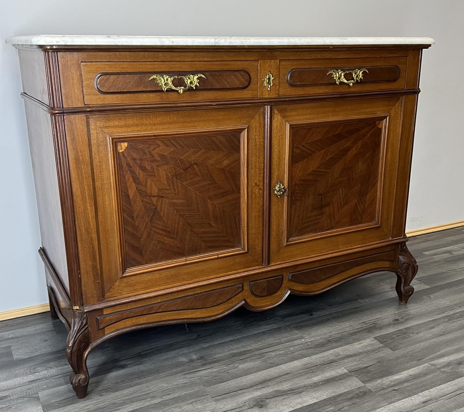 French Antique Marble Topped Sideboard