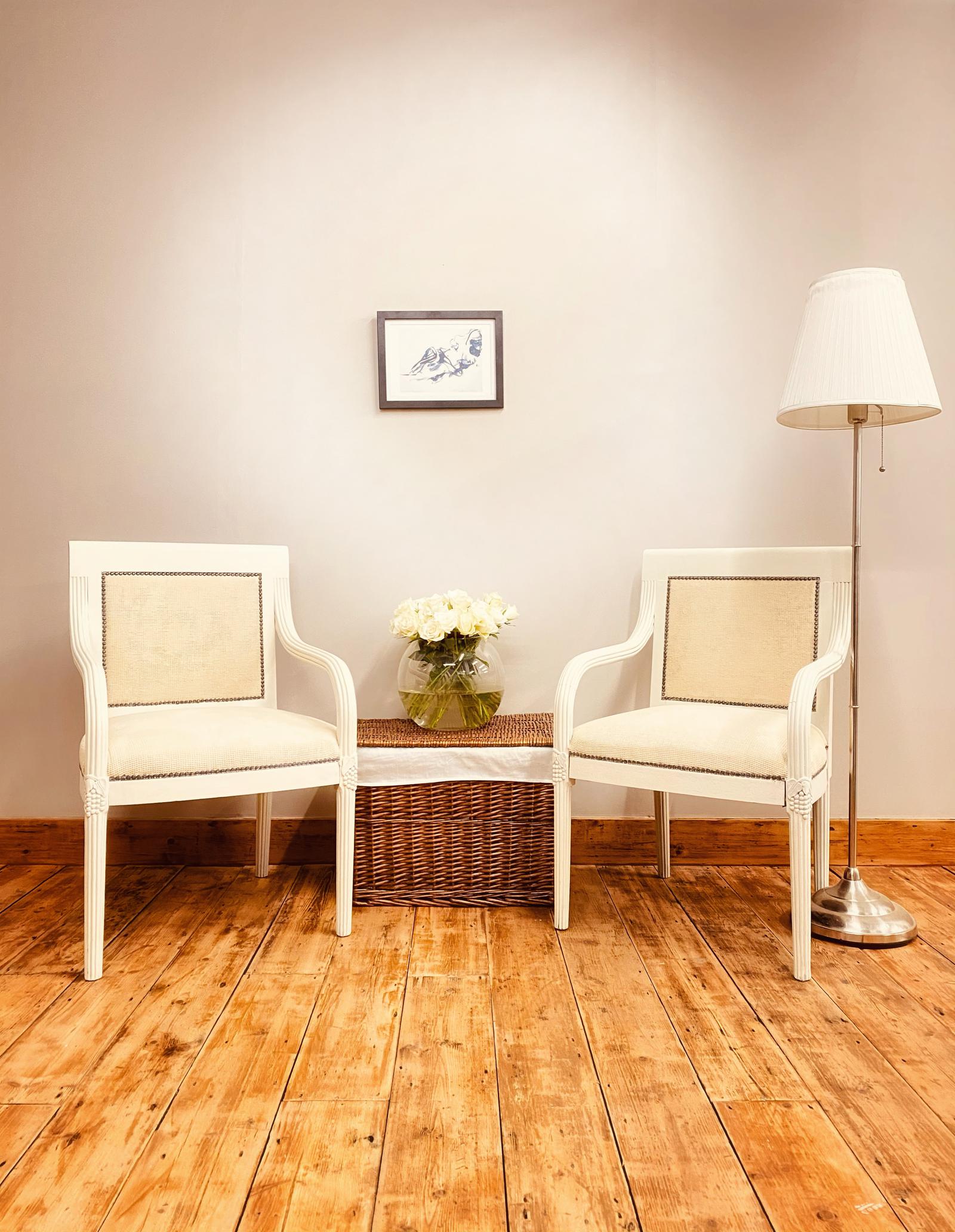 French Antique Pair of French Chairs / White Saloon Chairs
