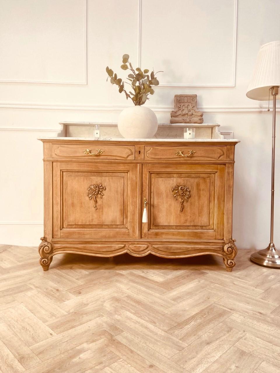 French Antique Provincial Washstand / Sideboard / Cupboard with Marble
