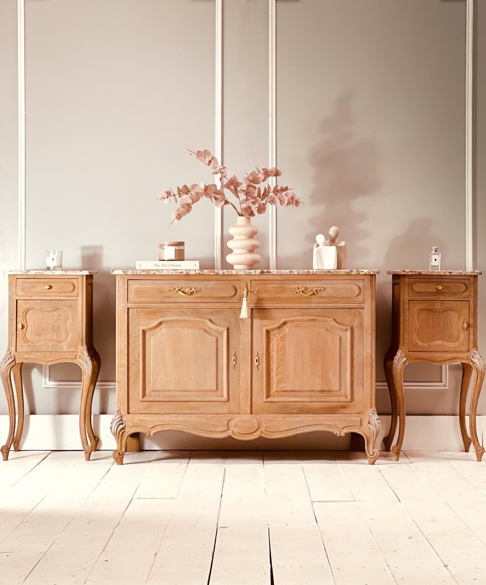 French Antique Sideboard & Bedside Tables / Marble Washstand Side Tables