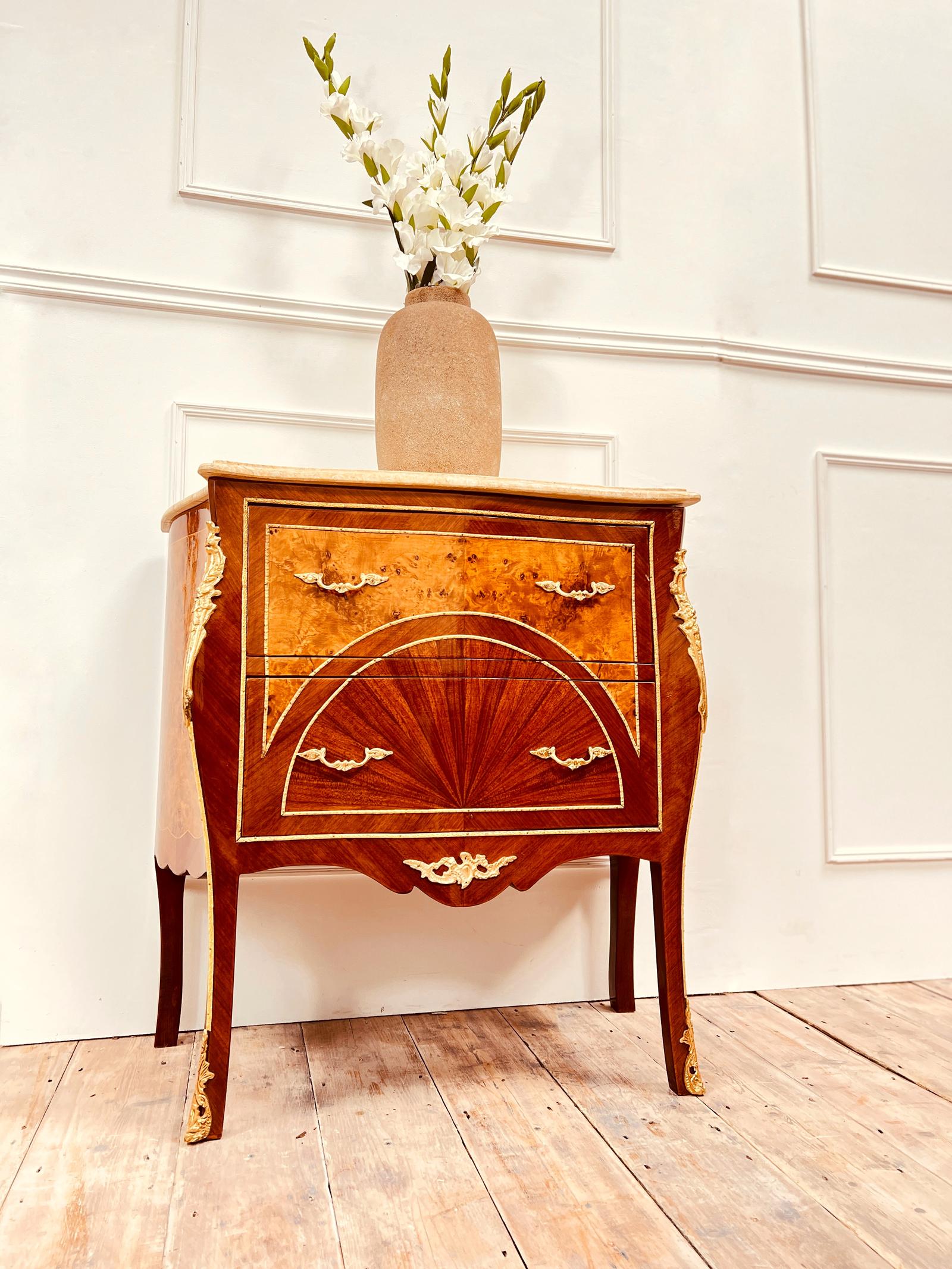 French Antique Small Burr Walnut Commode / Chest of Drawers