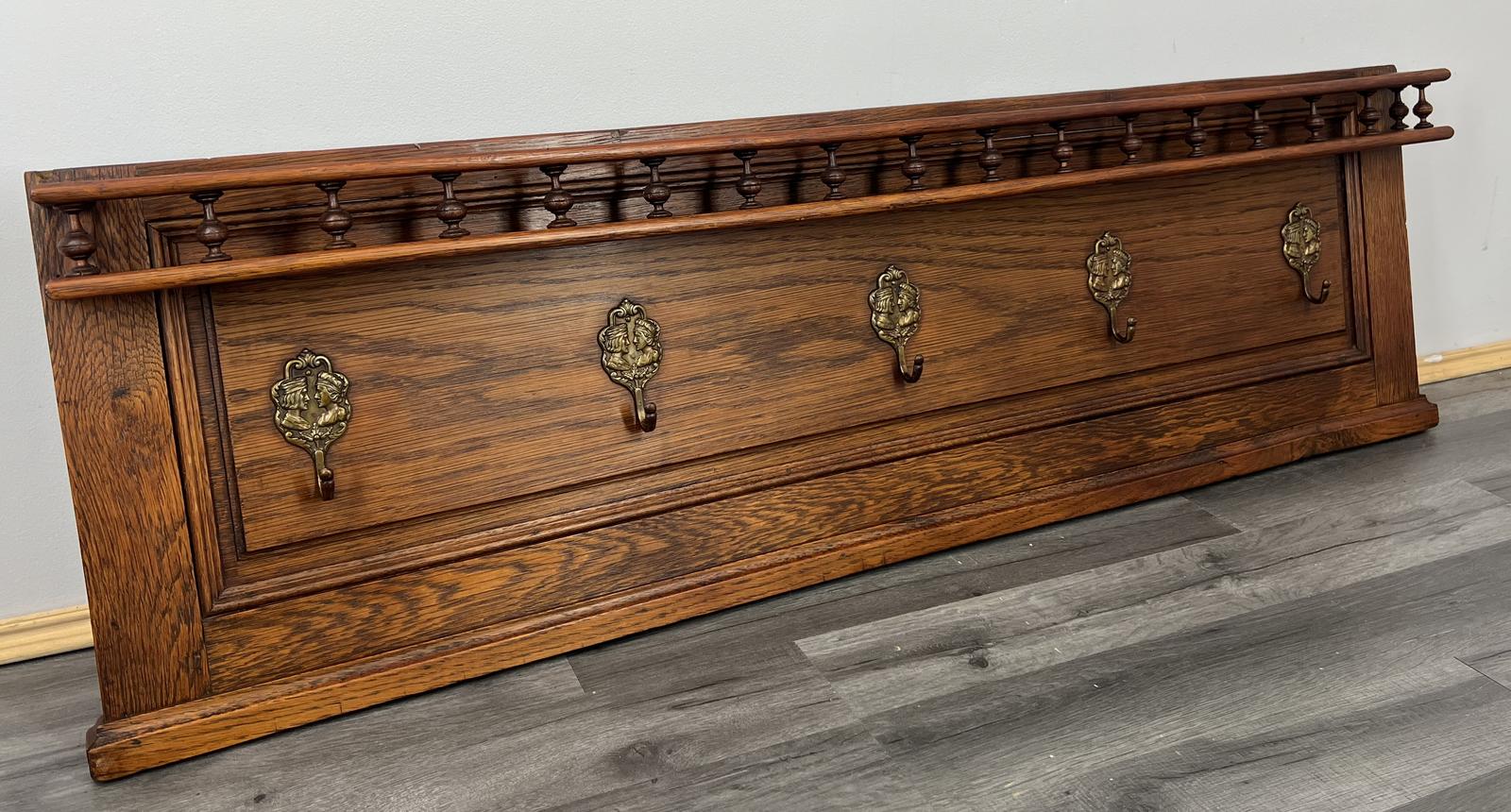 French Antique Solid French 5 Hook Ornate Carved Coat Rack