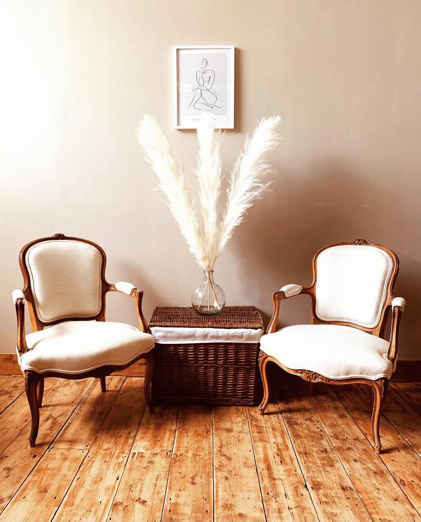 French Antique Style Chairs / Louis XV Armchairs / Walnut Chairs / Fauteuils