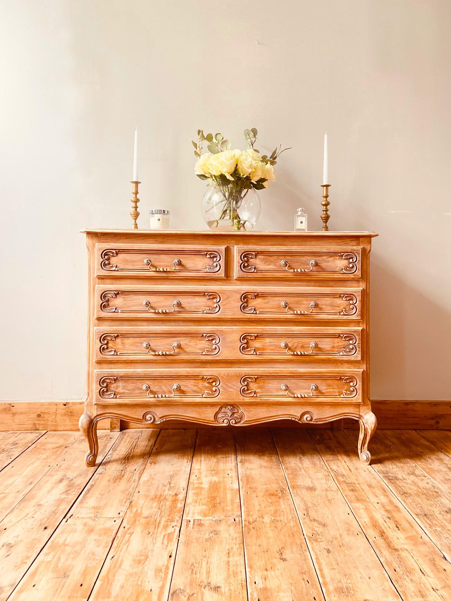 French Antique Style Chest of Drawers / Louis XV Style Raw Oak Chest
