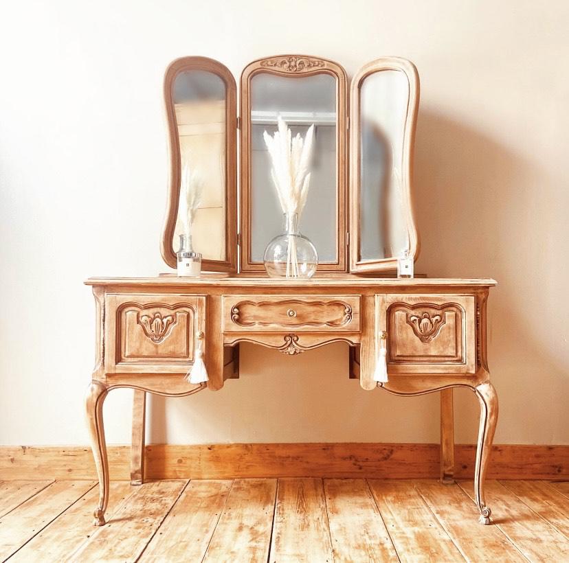 French Antique Style Dressing Table / Vanity Table with Mirror / Desk