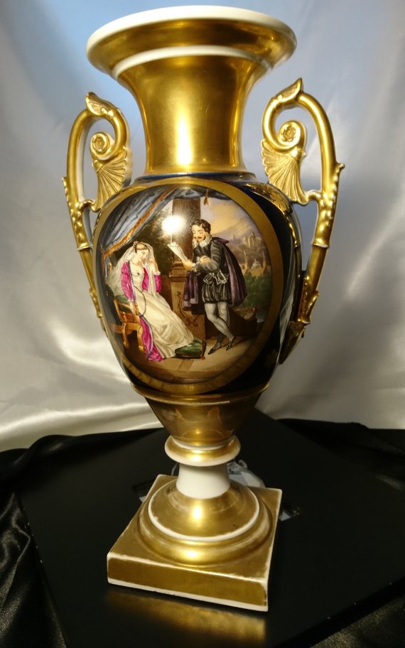 French Antique Vase, Ground Gilt, Romantic