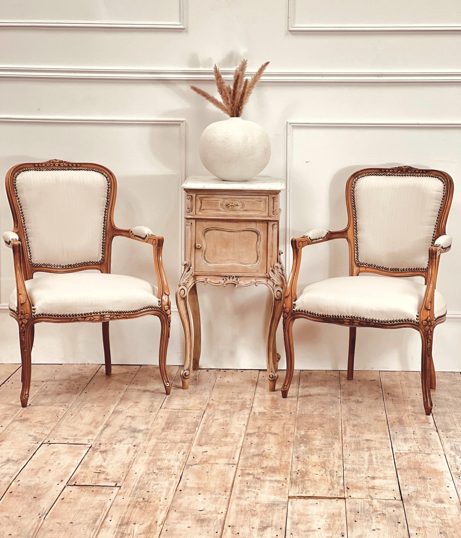 French Antique Walnut Armchairs / Pair of Fauteuils / Seating
