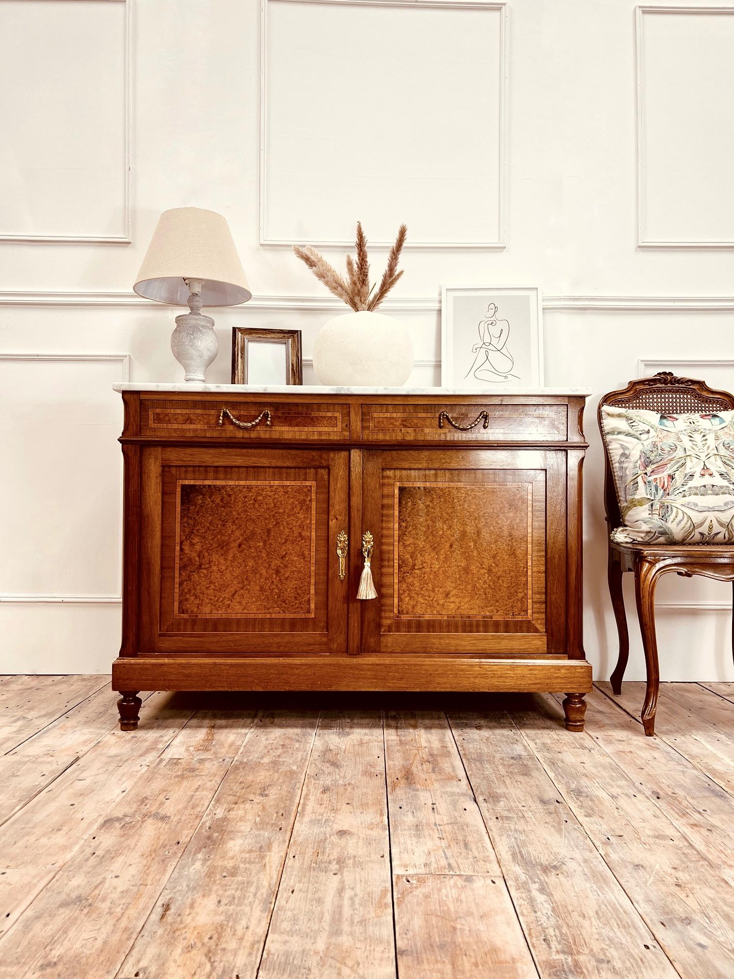French Antique Walnut Sideboard / Burr Walnut Cupboard
