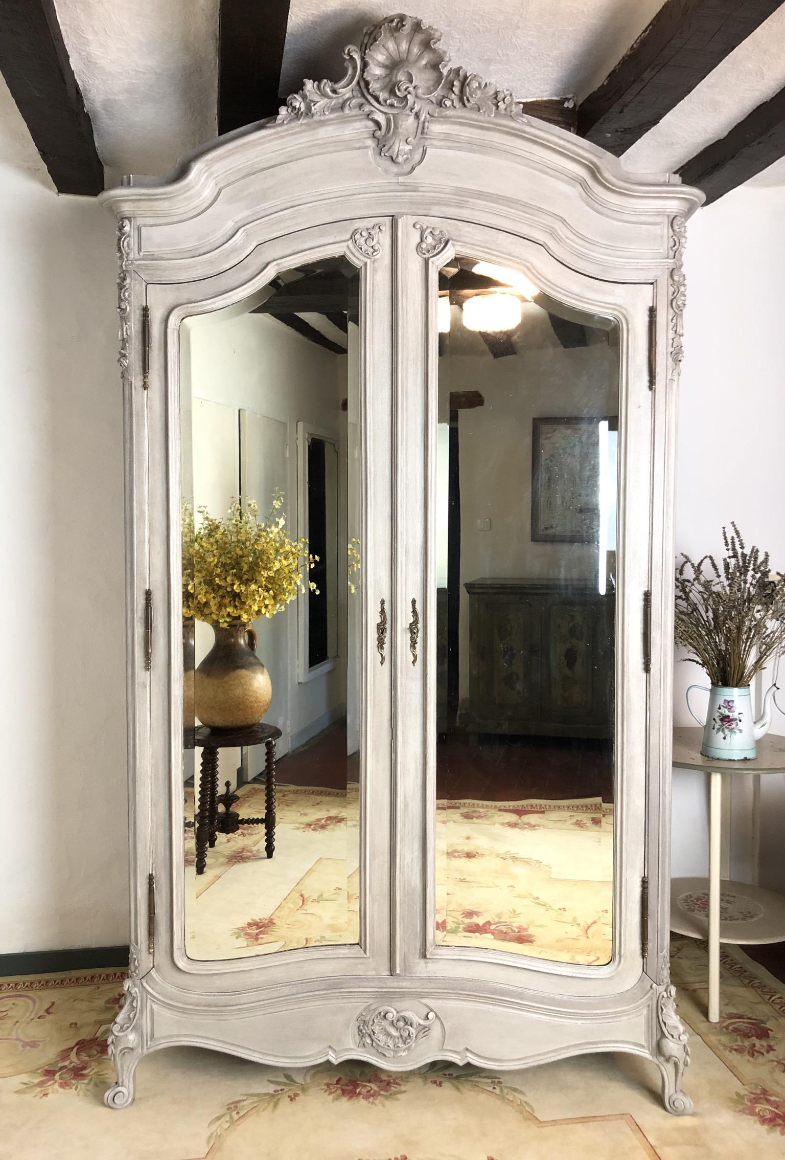 French Armoire Wardrobe Linen Cupboard Painted in Weathered Grey