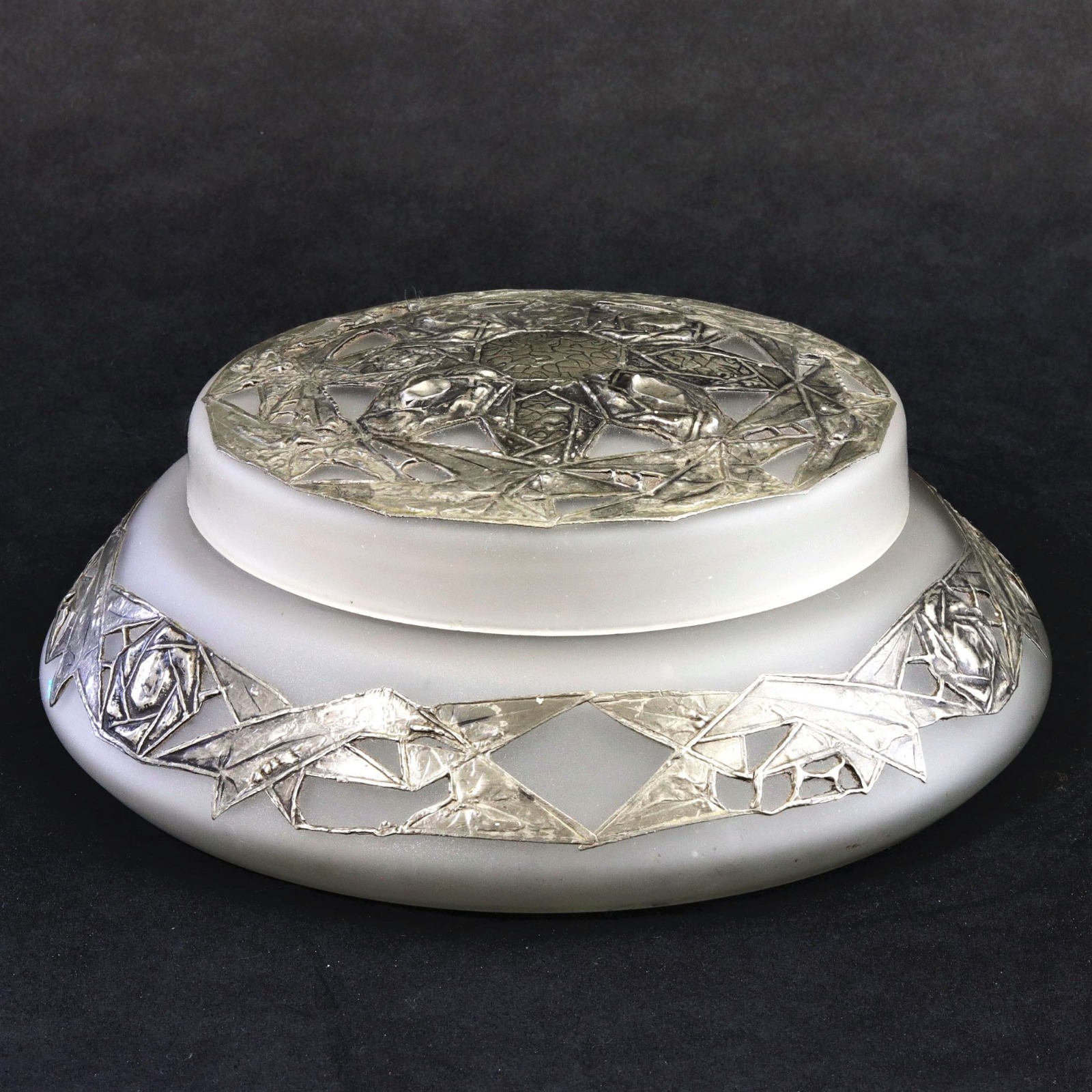 French Art Deco Glass Lidded Bowl with Pewter Overlay C.1915 (1 of 7)