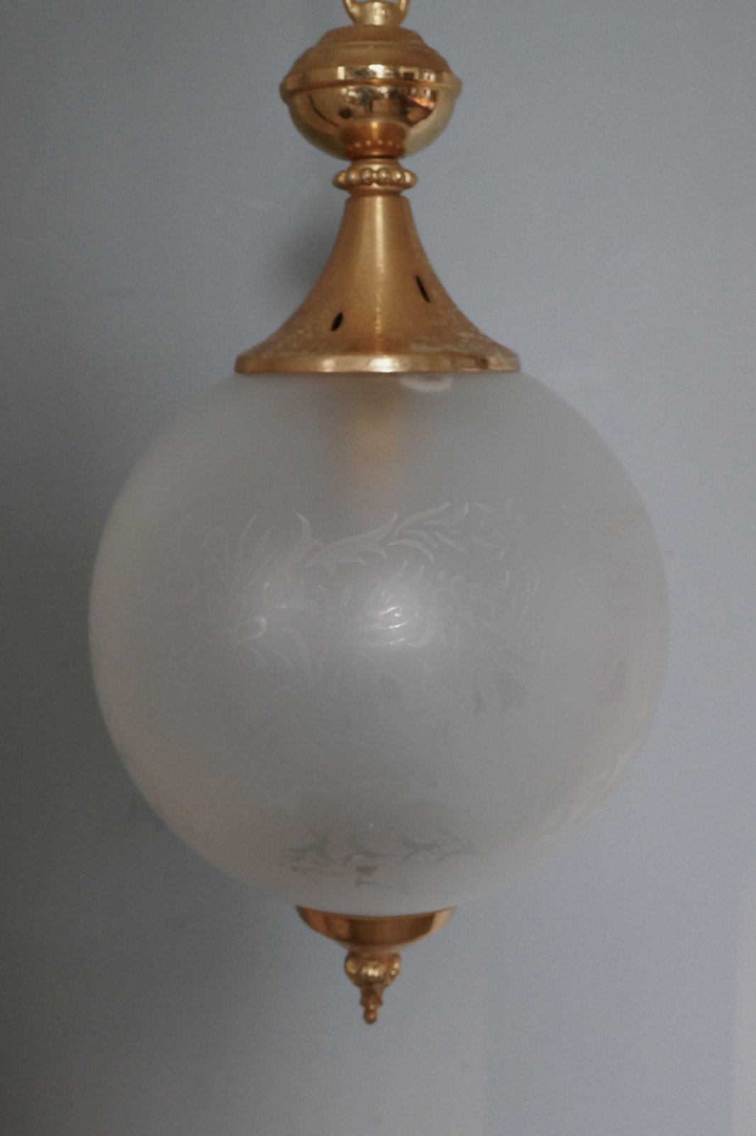 French Art Deco Globe Opaline Glass Hanging Pendant Light