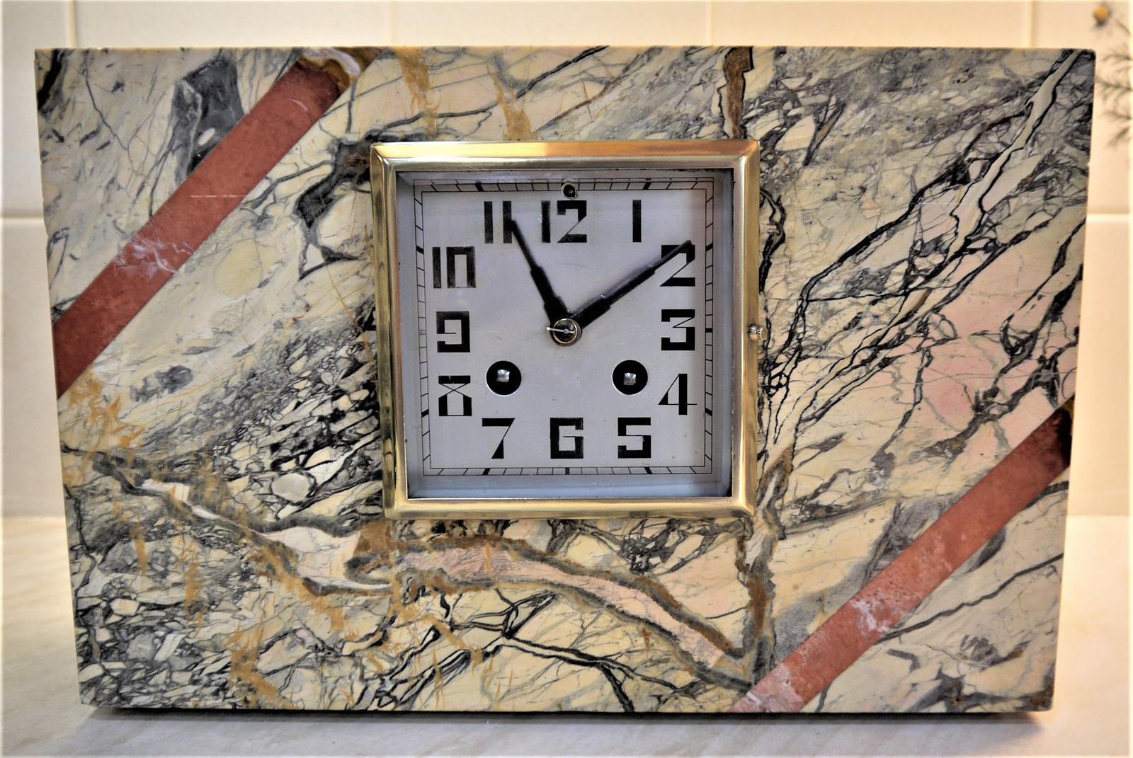 French Art Deco Marble Striking Mantel Clock 1930 (1 of 7)