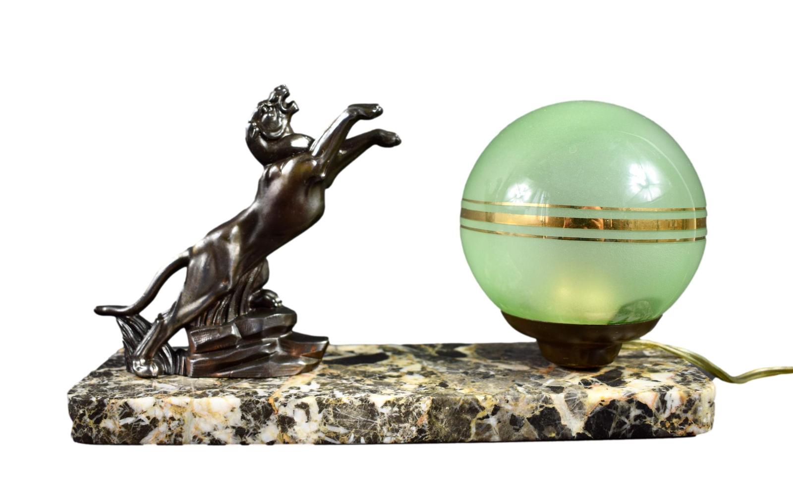 French Art Deco Panther Marble Table Lamp Modernist Vintage