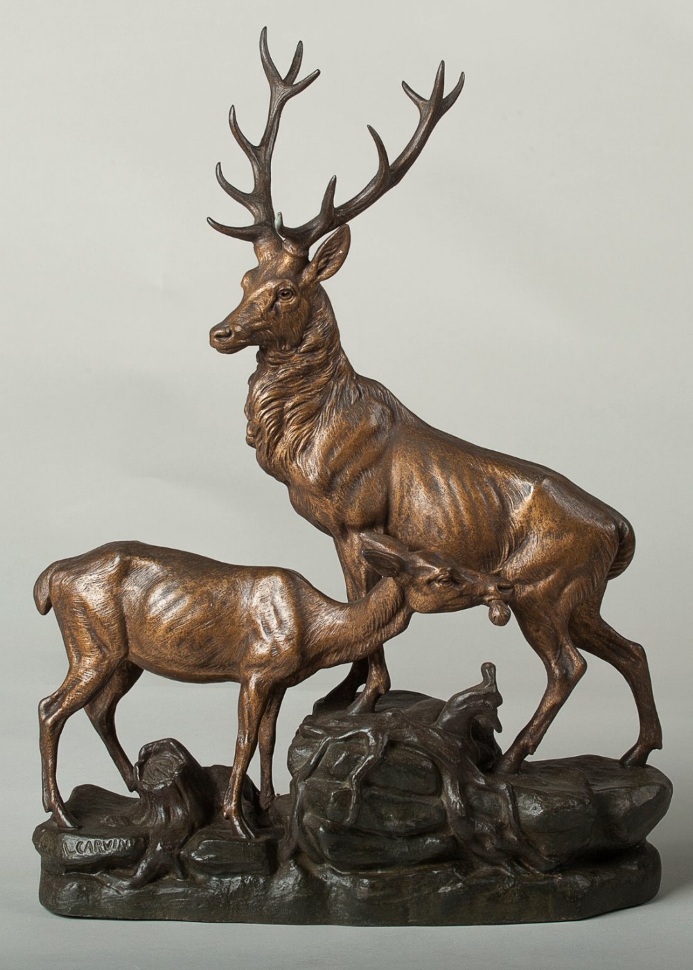 French Art Deco Patinated Spelter Sculpture of a Stag & Doe by Artist Louis Carvin (1 of 1)