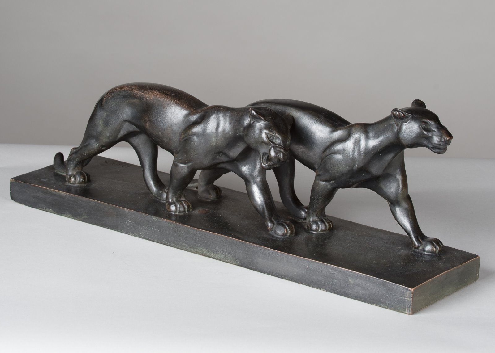 French Art Deco Sculpture of a Pair of Terracotta Panthers (1 of 1)