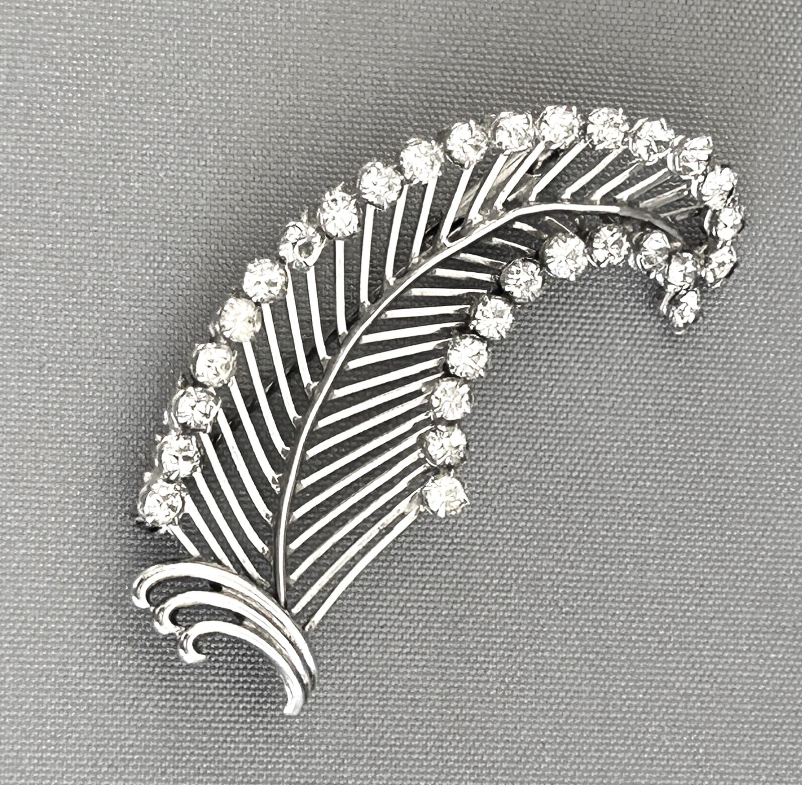 French Art Deco Silver & Paste Diamond Feather Brooch (1 of 6)