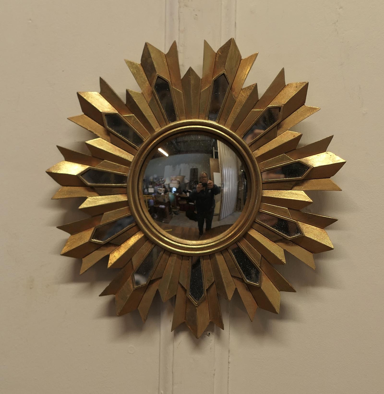 French Art Deco Style Sunburst-Starburst Gilt Mirror