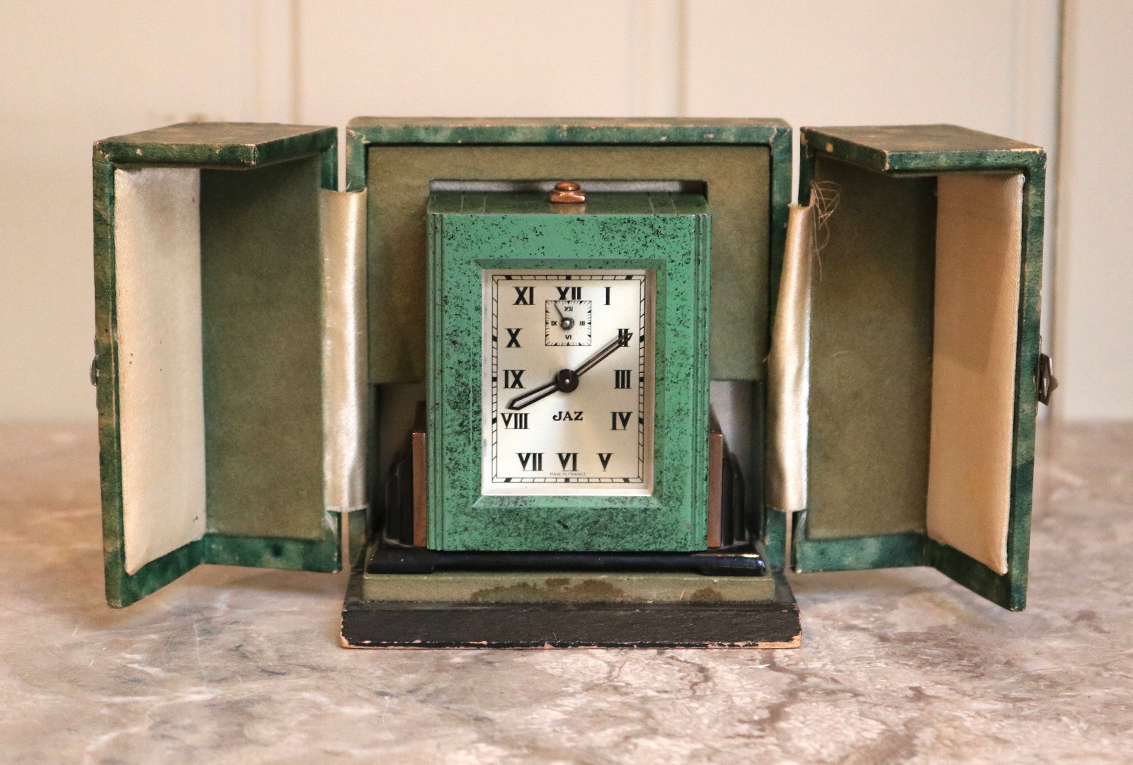 French Art Deco Travelling Alarm Clock & Case c.1925