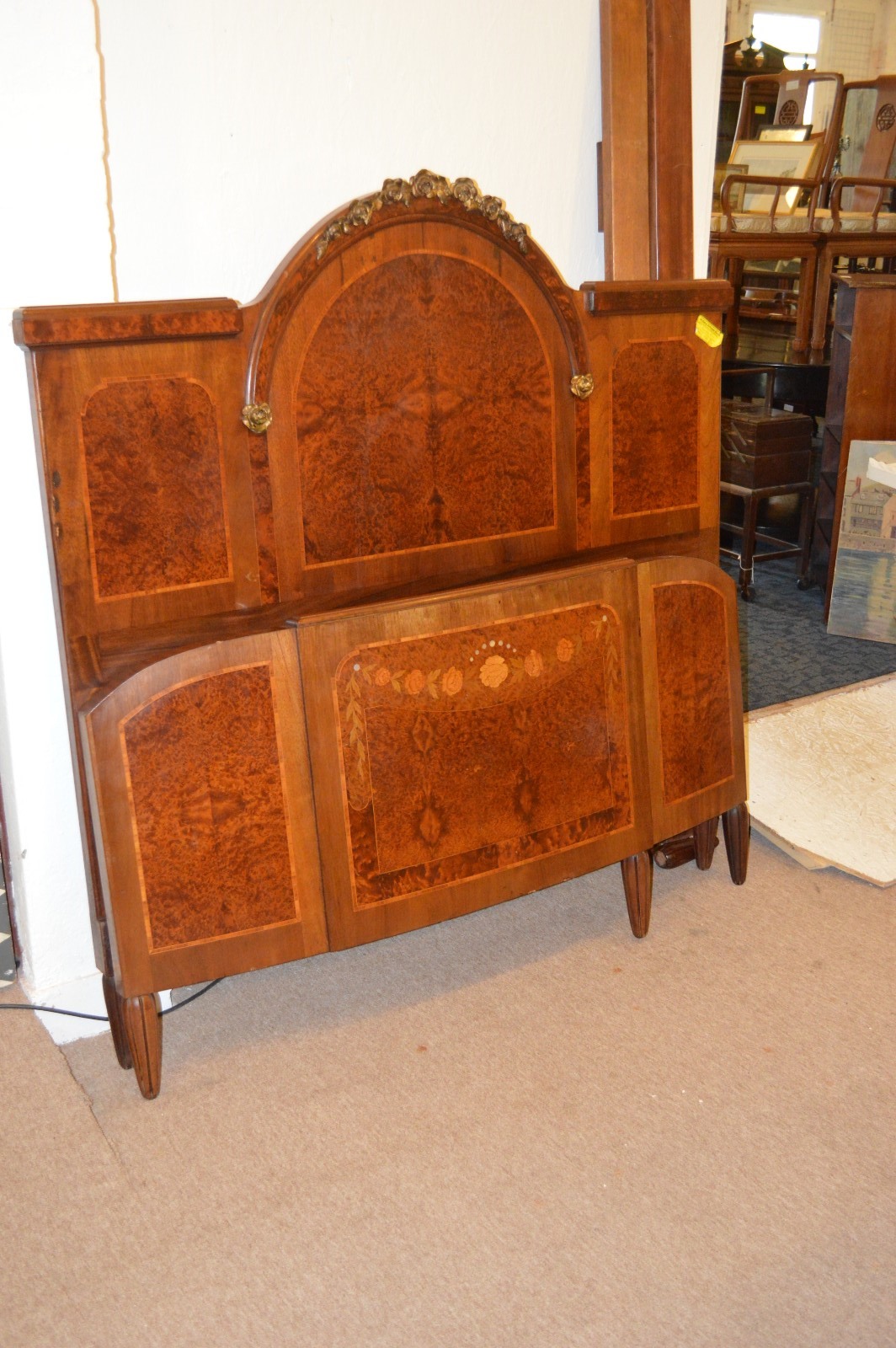 French Art Deco Walnut Double Bed with lots of Marquetry