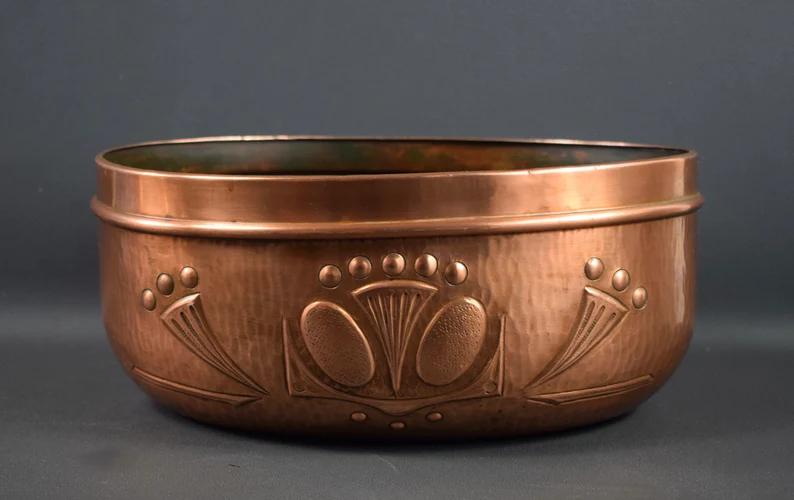 French Art Nouveau Antique Copper Cache Pot Jardiniere