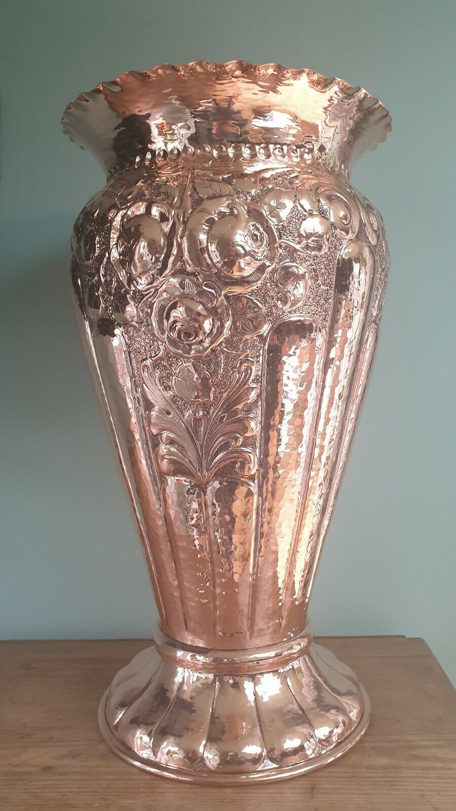 French Art Nouveau Embossed Copper Stick Stand or Urn c.1890
