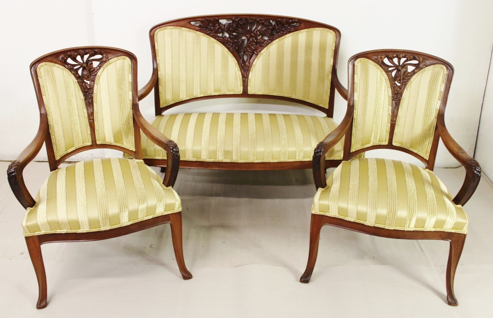 French Art Nouveau Walnut 3 Piece Salon Suite