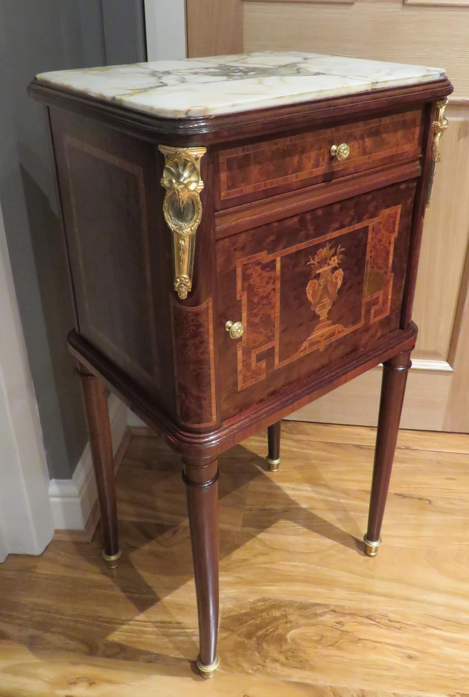 French Bedside Cabinet Burr Walnut Ormolu mounts