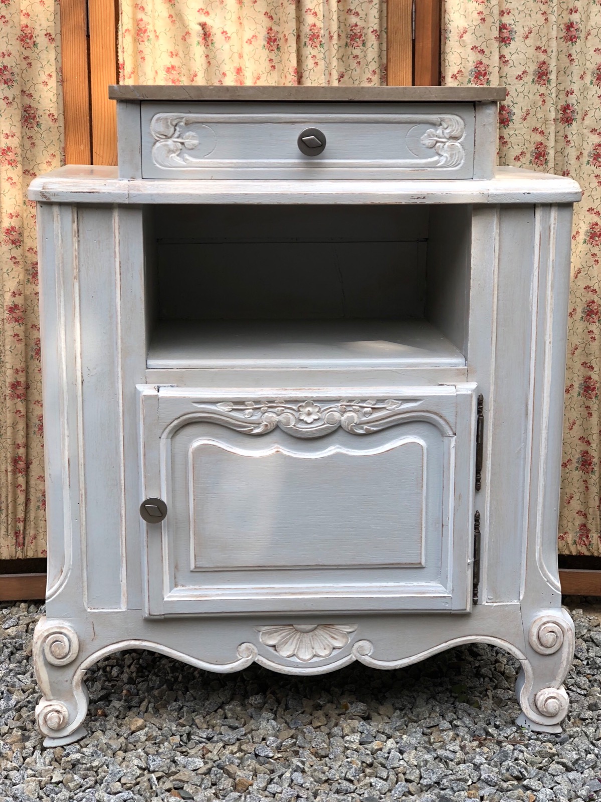 French Bedside Night Stand Marble Topped Pot Cupboard c.1920