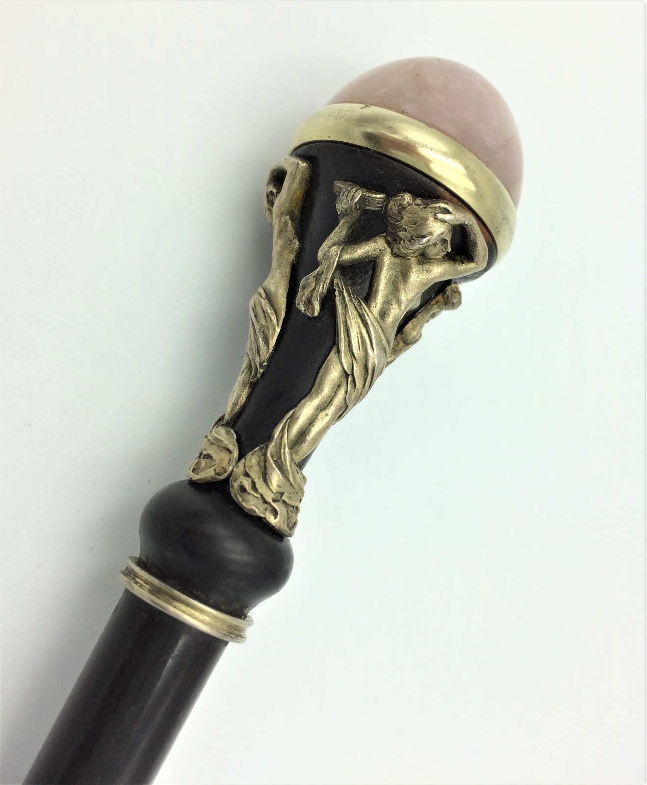 French Belle Epoque Silver Gilt & Rose Quartz Parasol Handle 1915