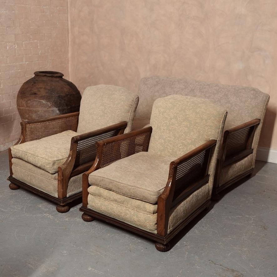 French Bergere Sofa & 2 Armchairs Antique 3 Piece Suite