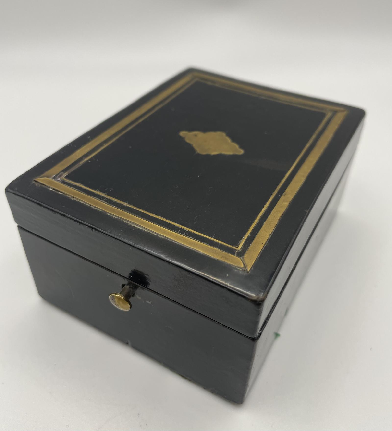 A late 19th French Jewel box in black laquer and with brass detailing..