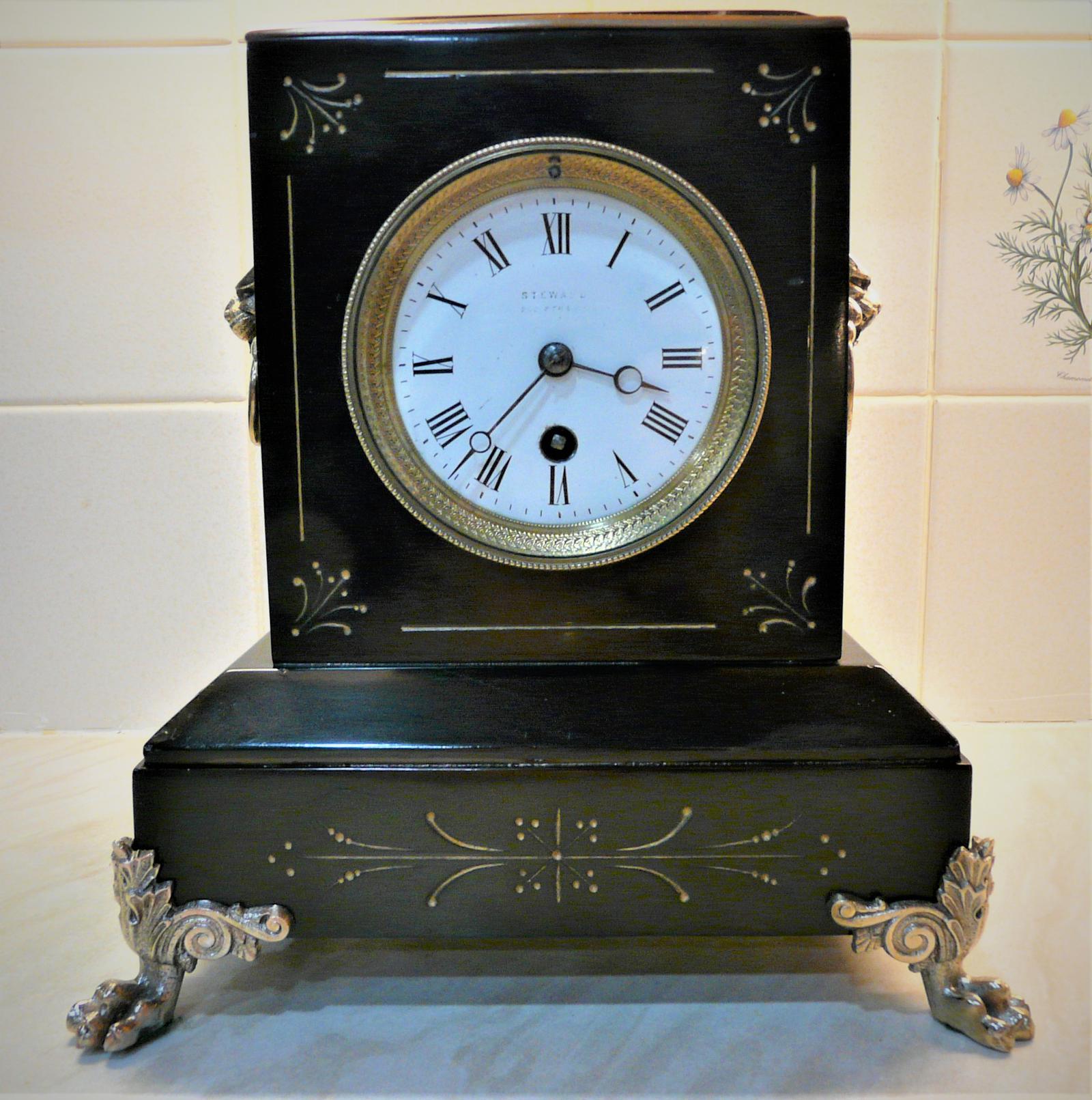 French Black Slate Mantel Timepiece by Richard et Cie c.1870