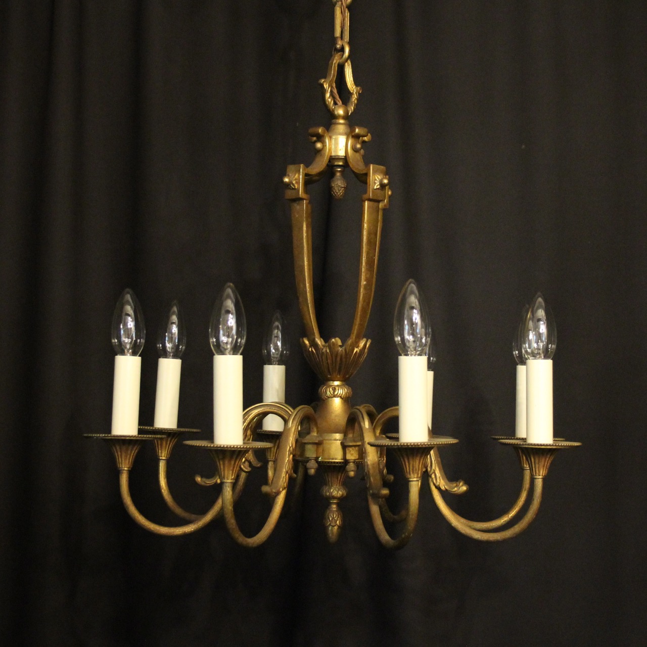 French Brass 8 Light Antique Chandelier