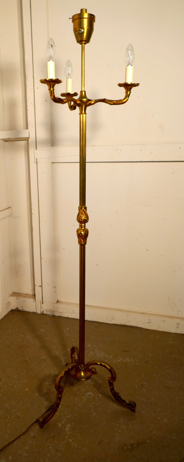 French Brass Arts & Crafts Floor Lamp, Regency Style Standard Lamp c.1920