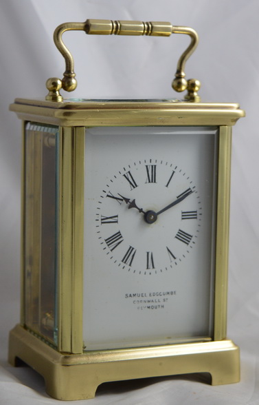 French Brass Carriage Clock Retailed Edgcumbe Weymouth c.1895