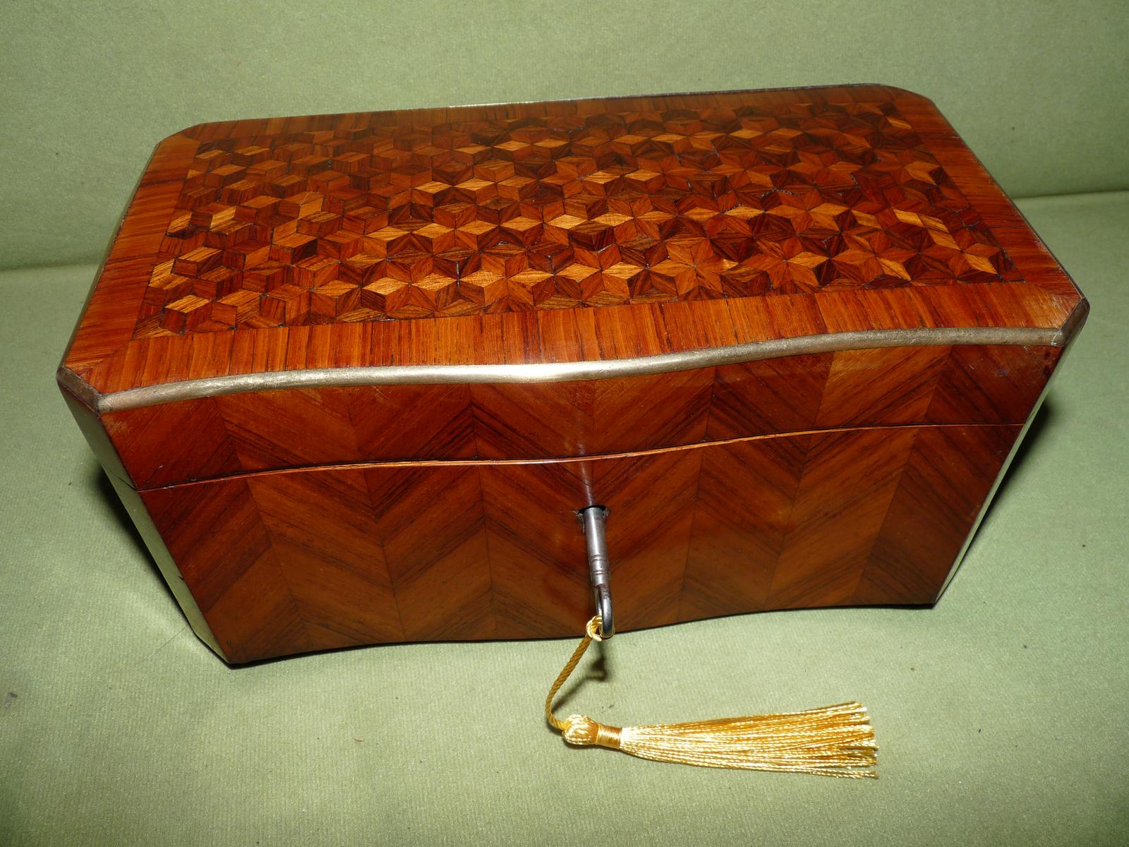 French Brass Edged Tulipwood Tea Caddy c.1870