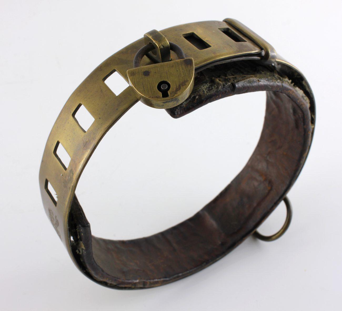 This large antique French dog collar which is made of brass dates from the 19th century.