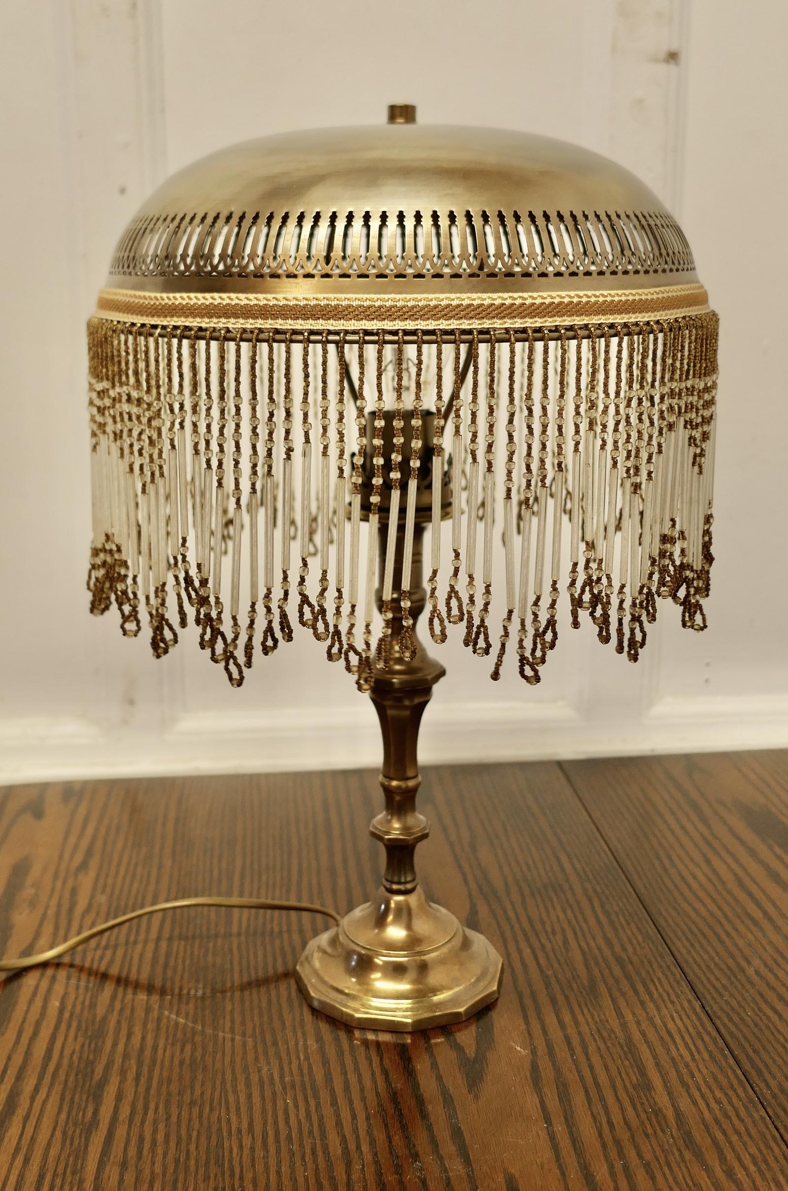 French Brass Reading Lamp with Beaded Brass Dome Shade