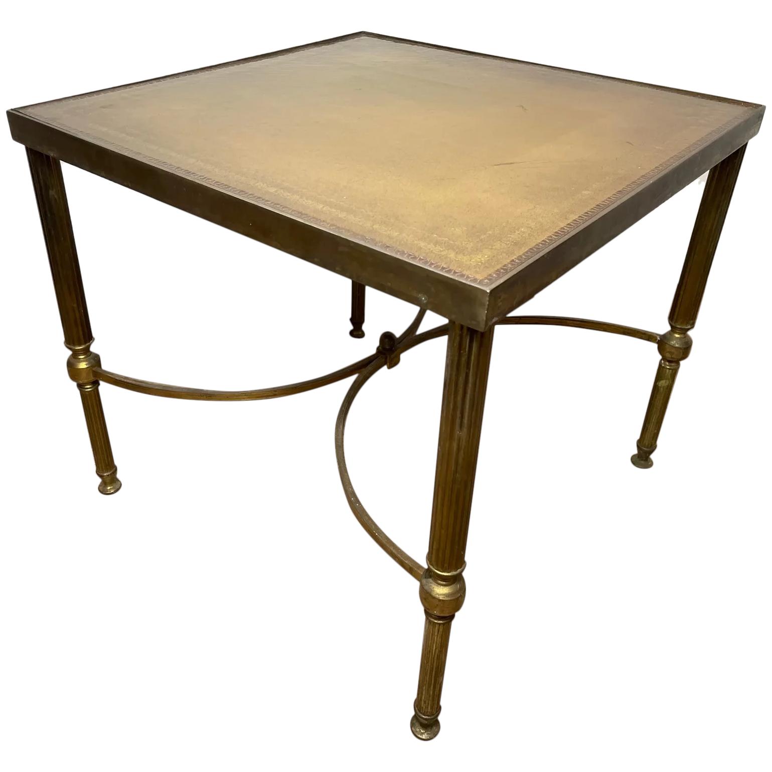 French Brass Square Leather Top Coffee Table