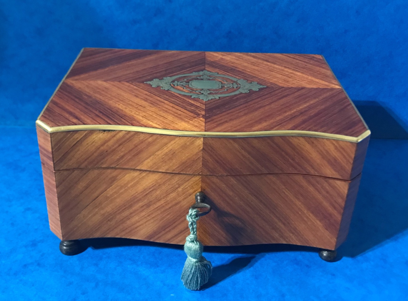 French Brassbound Angle Cut Tulipwood Box c.1870