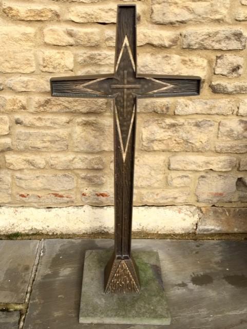 French Bronze Altar Cross Crucifix on Slate Stone Base