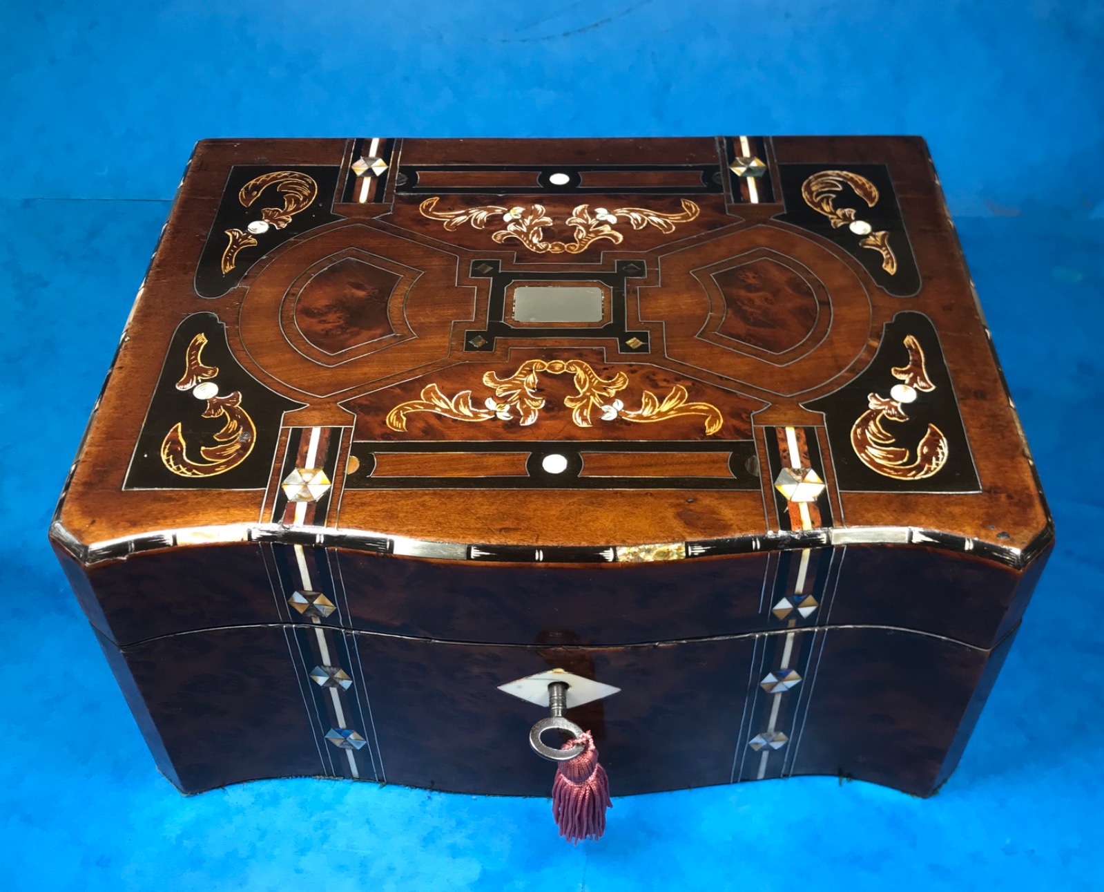 French Burr Cedar Jewellery Box with Inlay c.1880