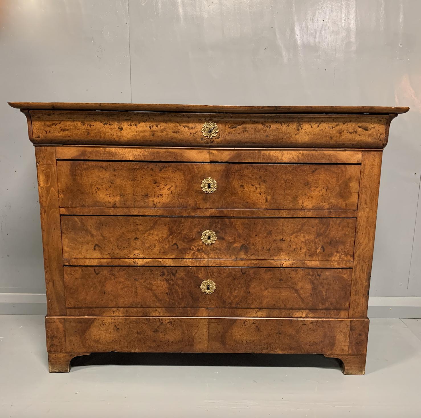 French Burr Walnut Commode Chest of Drawers