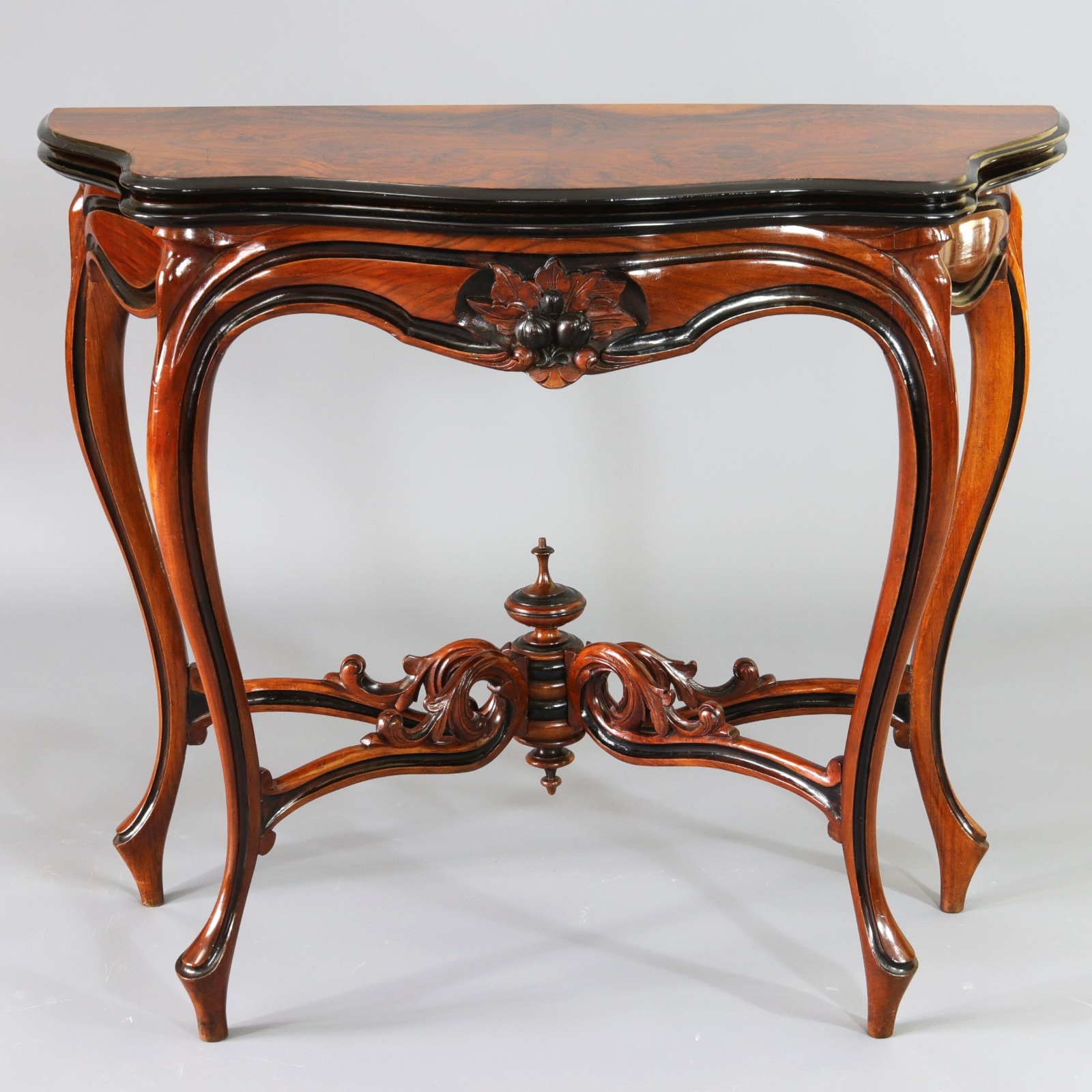 French Burr Walnut & Ebonised Serpentine Foldover Card Table C.1870 (1 of 1)