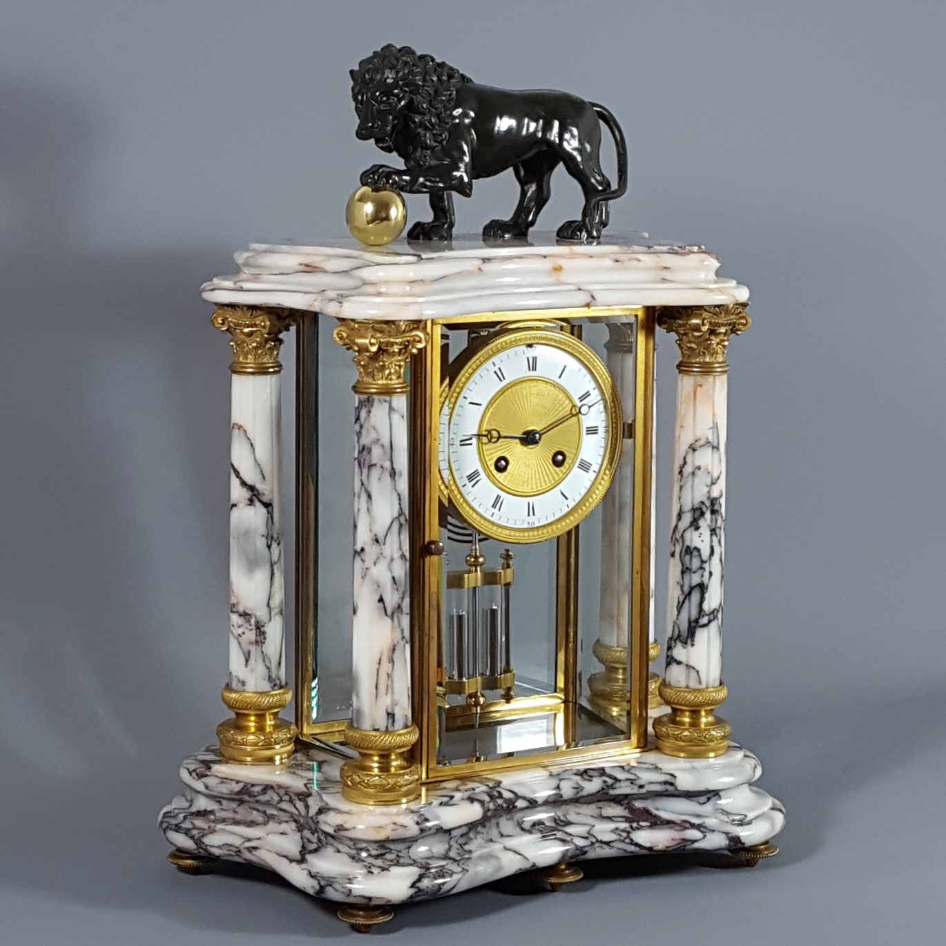 French Carrara Marble & Gilt Brass Four Glass Mantle Clock, Japy & Cie C.1880 (1 of 12)