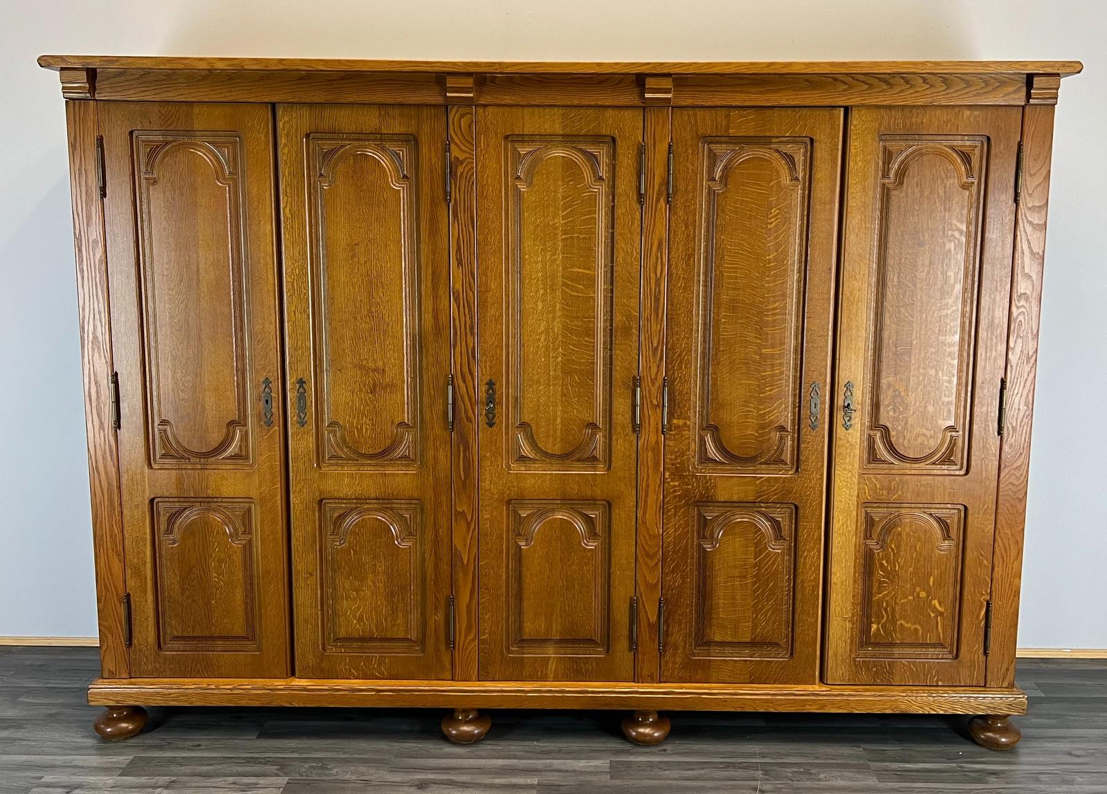 French Carved 5 Door Armoire Wardrobe