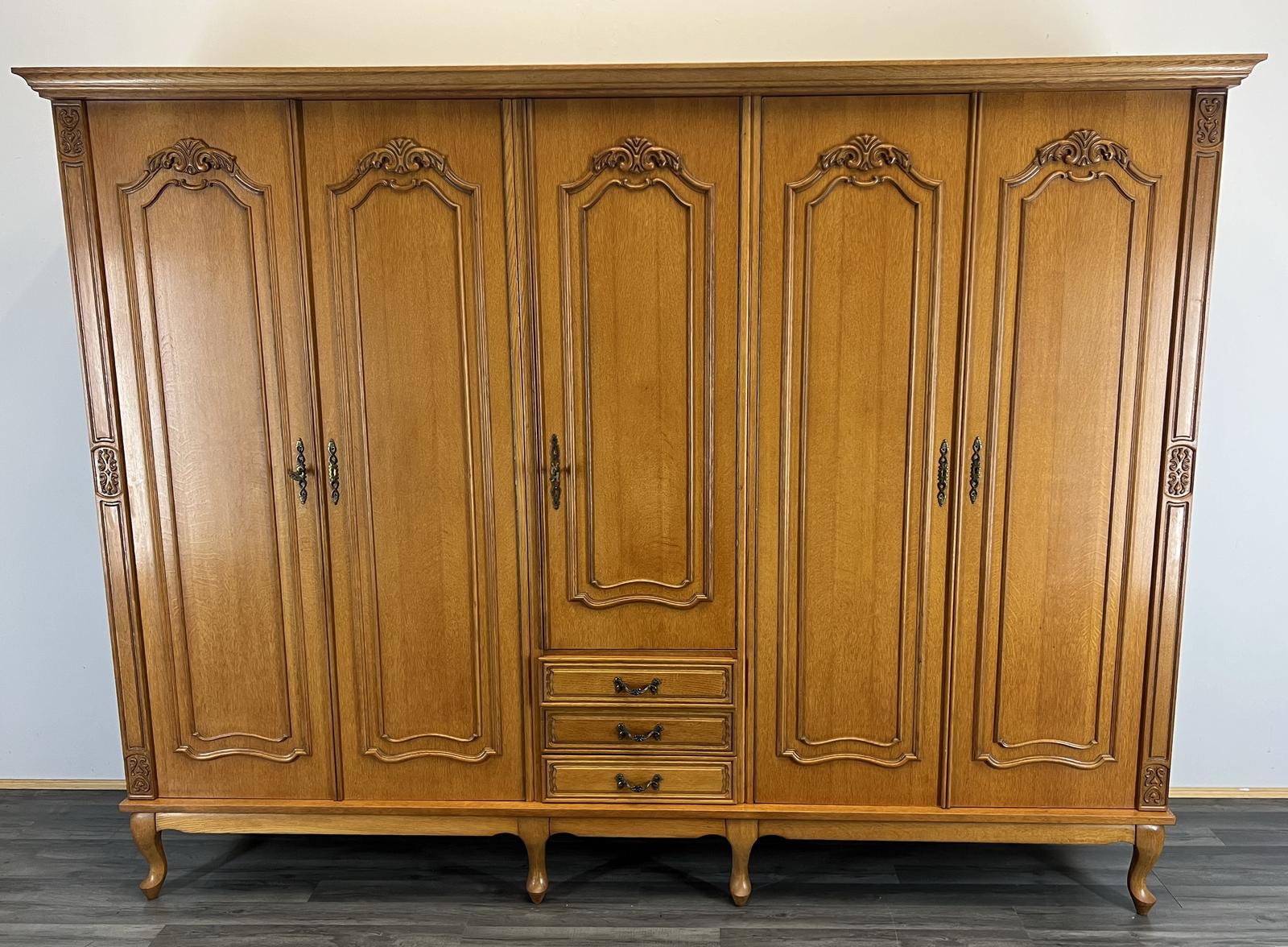 French Carved 5 Door Armoire Wardrobe
