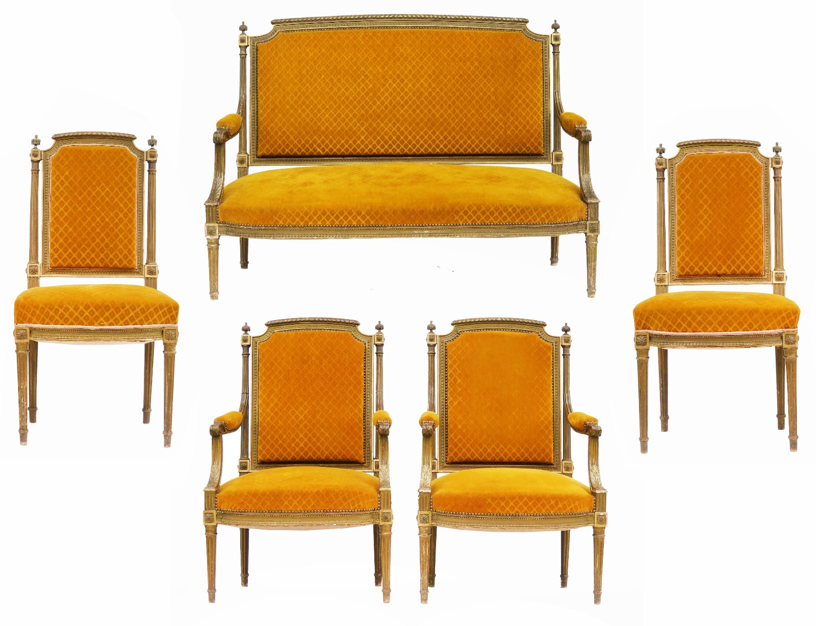 French Carved Giltwood Salon Set Louis XVI Revival 20th Century to Recover