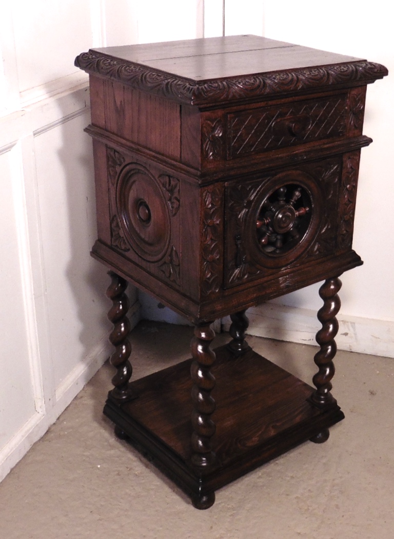 French Carved Oak Night Table or Bedside Cupboard