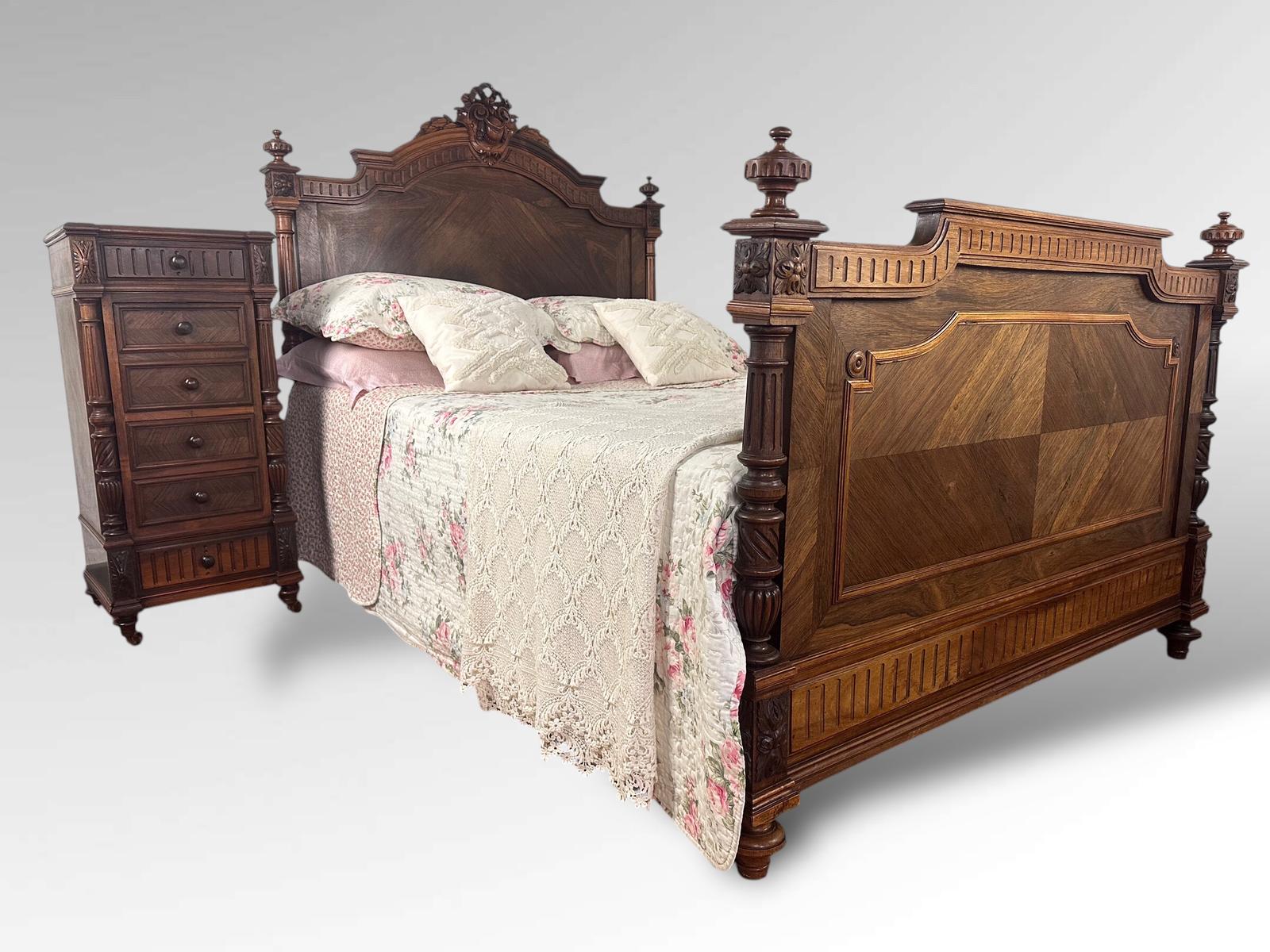 French Carved Solid Oak Small Double Bed Frame Inc Drawers